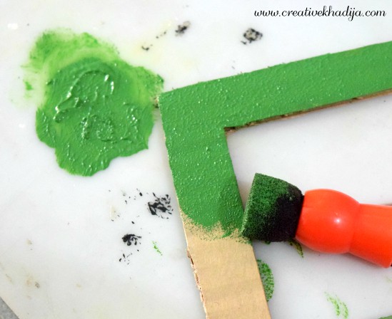 Then I paint it in green color with acrylic paints. I am using a foam brush applicator here.