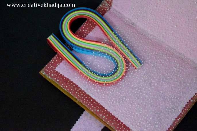With the help of glue gun, First I paste the felt fabric sheet on outer side and then netting sheet in the inner side.