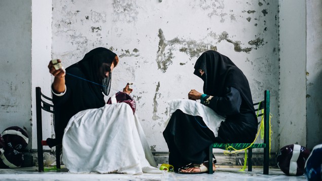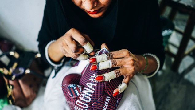 All the panels are then hand stitched by workers. Even an experienced worker will require up to three hours to stitch a football. The last seam alone will take 15 minutes of a worker’s time. Male and female workers working in the sports’ equipment manufacturing companies in Sialkot spend hours on stitching a football, and the perfect final product speaks volume of their talent.
