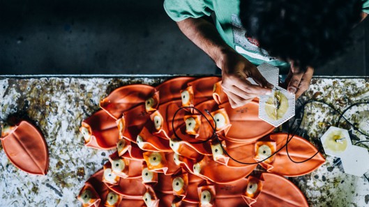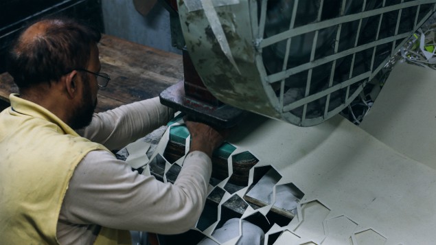 Then comes the coloring process. A complex coloring and designing procedure supervised by the experts ensure that the football forms a pattern when all panels are colored.