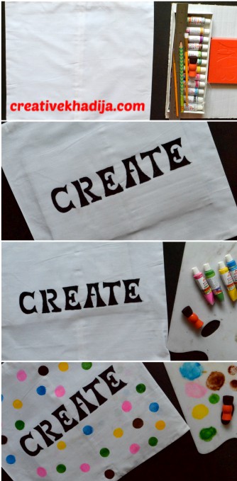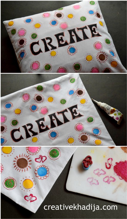 Happy weekend dear girls! What are your plans for the weekend? If you are planning to craft something, I have a great idea for you and your home in fact. I recently painted a pillow cover with fabric paints. I will be placing this in my craft room as it’s design says CREATE. I hope the pillow will motivate me to create more. By the way today we have a video tutorial on the blog. Let’s have a look now how to design pillow cover with fabric paints.