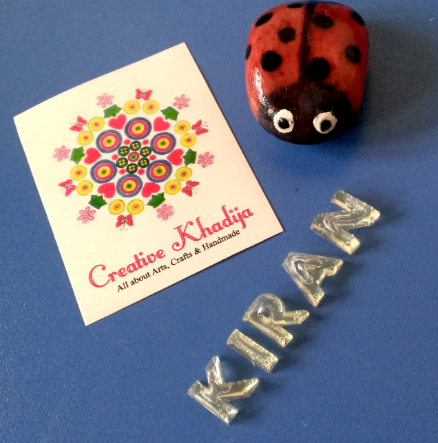 You can see the filled mold of alphabets. Here is my name KIRAN in the above image! I shared this at my social media networks & asked my followers to guess whats going! And 95% people guessed right! haha :) Not just my Khadija name, but now my readers are now familiar with my Kiran name as well.