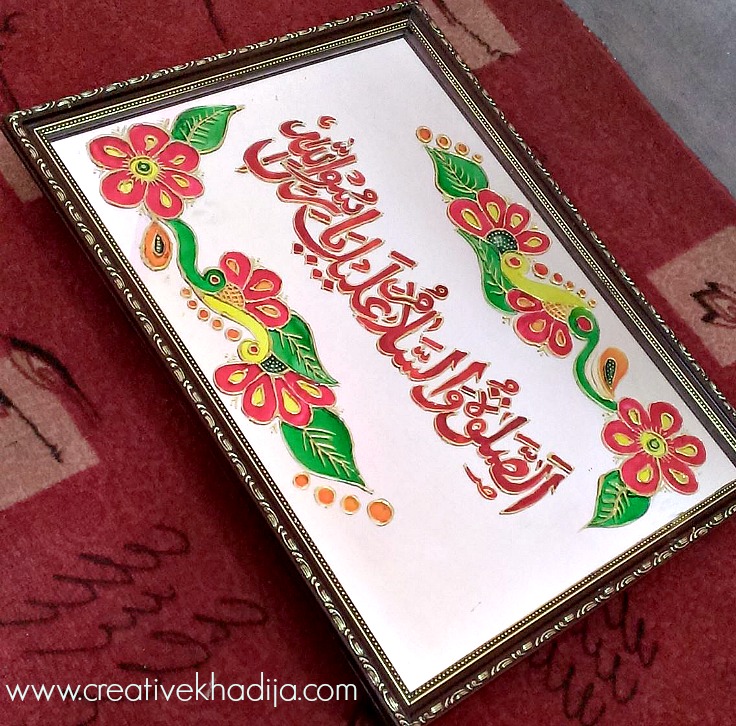 2017 is finally here. I welcome you all in the new year. Let’s start this creative journey from today! So here is the first blog post of 2017 on Creative Khadija Blog. Alhamdu’lillah for a successful & wonderful 2016 as well as a great start of this new year. Now I am going to share a glass painting wall art today. I hope you will like my recent art work. You might check this wall art on my social media networks already but here is a little bit detail now.